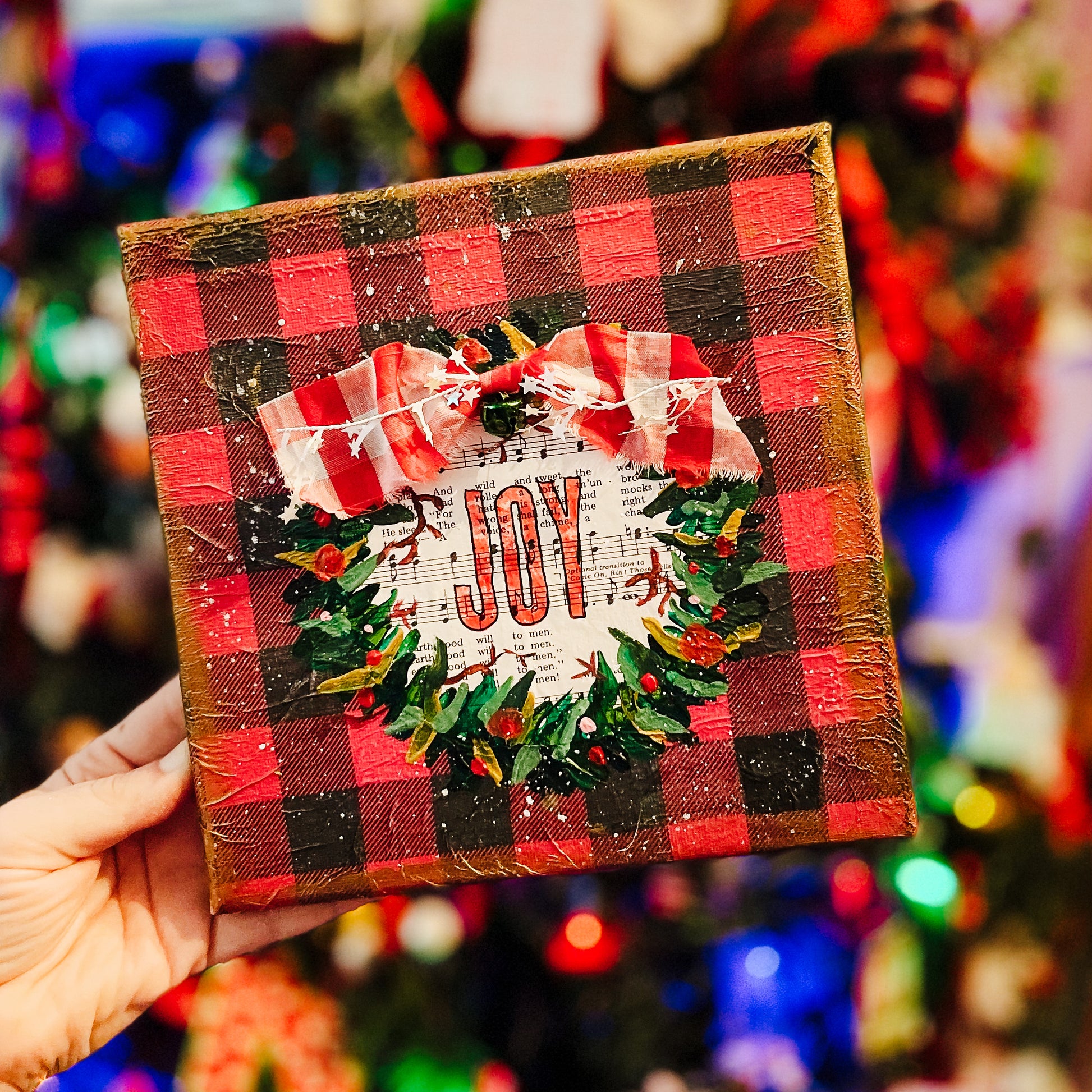 Join us for our JOY Christmas canvas class! We’ll be making the canvas in the photos above, and along with some fun techniques to use in your Bible Journaling and crafting!
